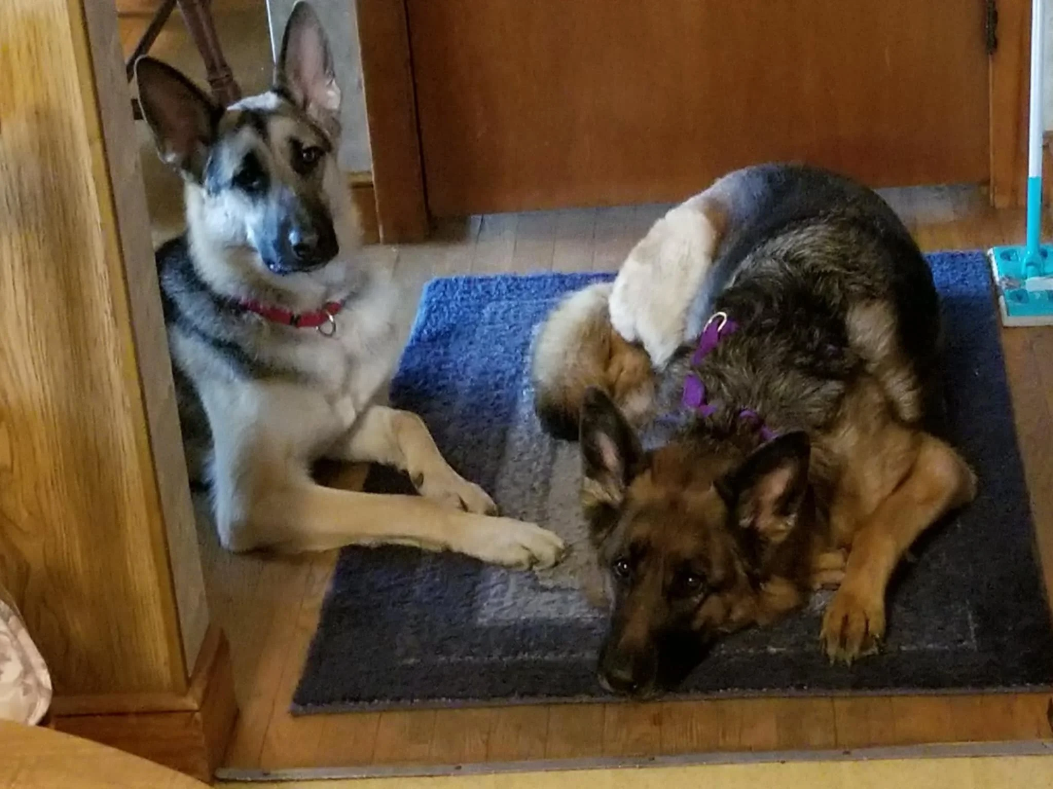 Karma & Justice’s handler worked for the government. She’d seen a lot of dog trainers before me searching for answer. I was able to get to the bottom of what was going on. As a holistic dog trainer after doing some healing work on Karma I realized she had a migraine. Their handler took her for a MRI and it was confirmed that was what had her acting up. Without treatment she could have hurt her handler and buddy Justice.
