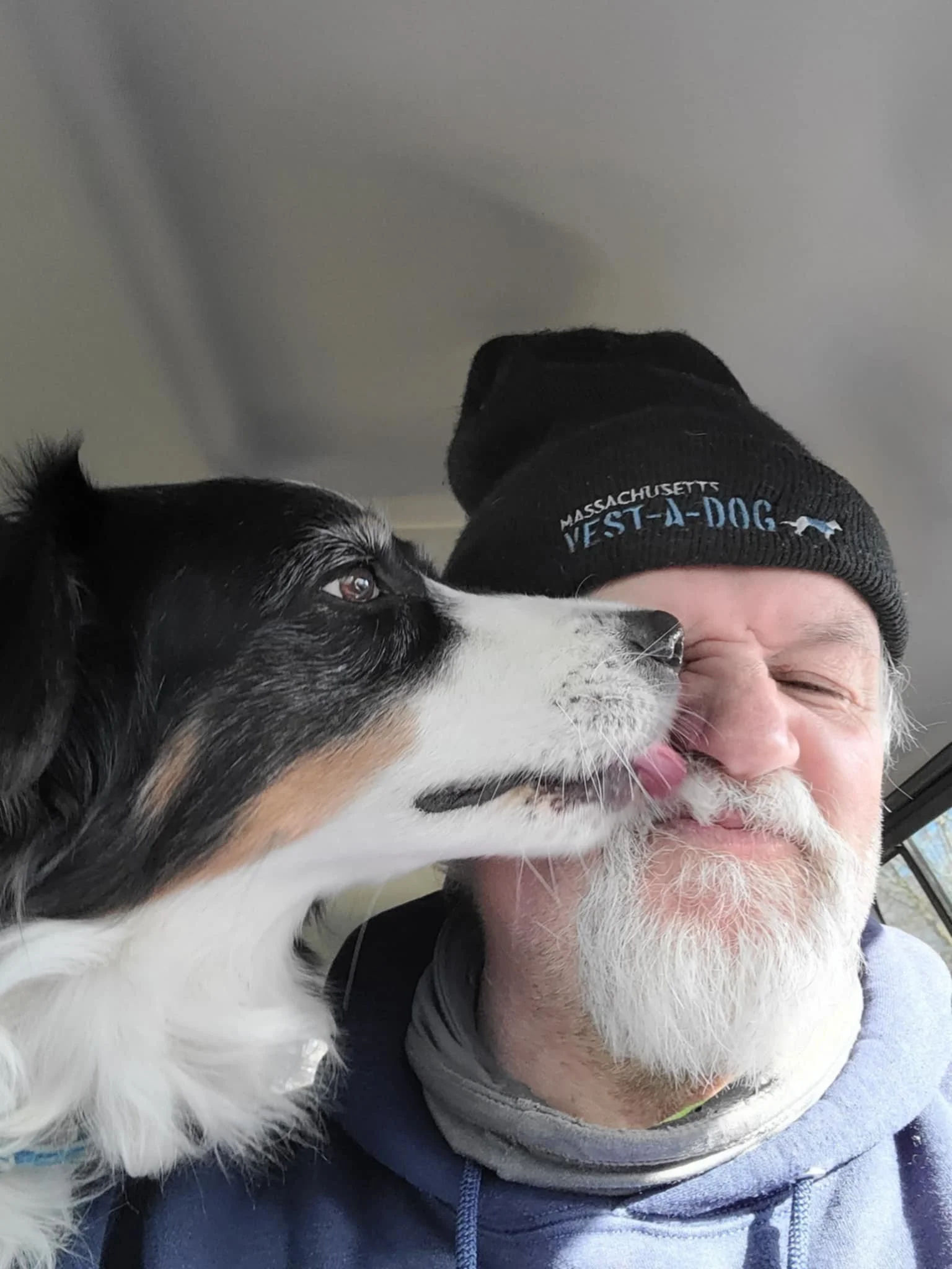 Molly giving me a lick. She was my girl & a wonderful protector who came with me when I trained other dogs. One time a dog jumped me and before I knew it Molly was there making sure that dog was back in it’s place.